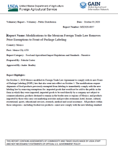 México: El USDA emitió una serie de recomendaciones relacionadas con el etiquetado frontal que se exige para ciertos alimentos que se importan en México.