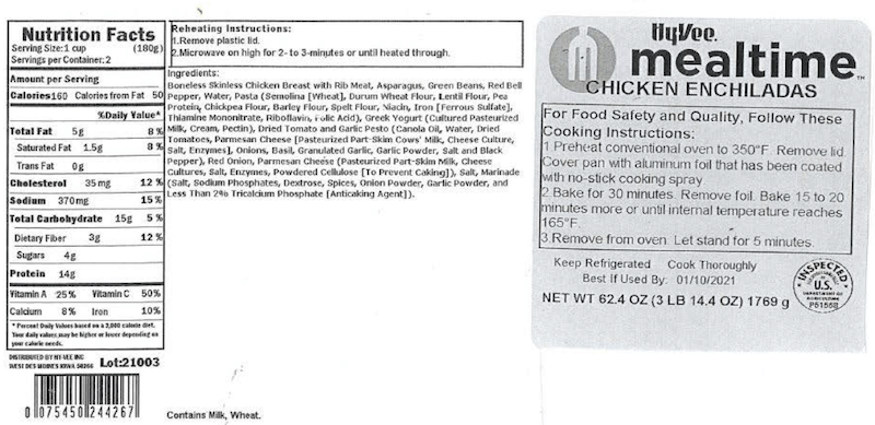 El FSIS emite una alerta de salud pública para productos de enchilada de pollo que no están listos para comer, tratados térmicamente y que no están completamente cocidos debido a etiquetado incorrecto y un alérgeno no declarado (Fuente).