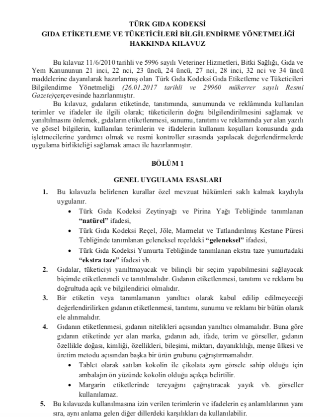 Se actualizaron las Directrices del Codex de Alimentos de Turquía sobre etiquetado de alimentos e información al consumidor preparadas por la Dirección General de Alimentación y Control del Ministerio de Agricultura y Silvicultura. La Guía de etiquetado actualizada se publicó en la página de la Dirección General (Fuente).