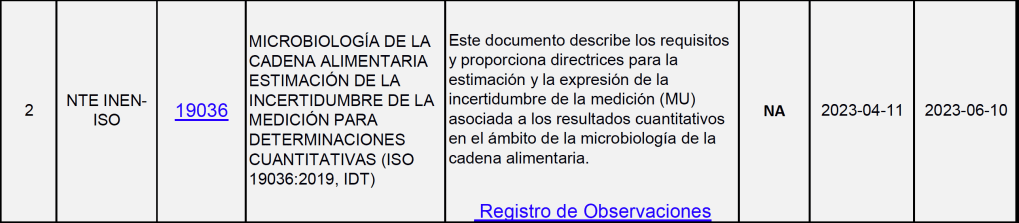 The Ecuadorian Standardization Service (INEN in Spanish) published in public consultation the Draft adoption NTE INEN-ISO 19036 Microbiology of the food chain estimation of measurement uncertainty for quantitative determinations (ISO 19036:2019, IDT).